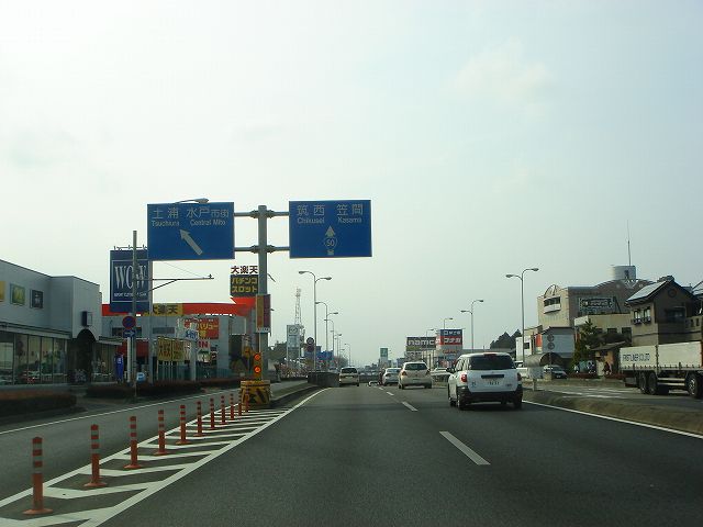 国道50号水戸市街方面は左へ