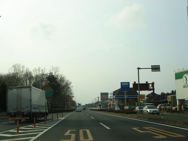 サントル千波(せんば)交差点・立体から水戸市街からのもうひとつの国道50号が合流する大塚高架橋までの区間を走行します。
