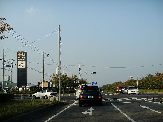 西駐車場はこの二つ先の交差点から右折して入ります