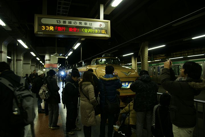 2010年3月14日のダイヤ改正で上野〜金沢間を走る夜行列車、寝台特急北陸が廃止、急行能登の臨時列車化でダイヤ改正前の上野駅は北陸・能登の最後の姿を撮影しようと駆けつけたファンでにぎわっています。