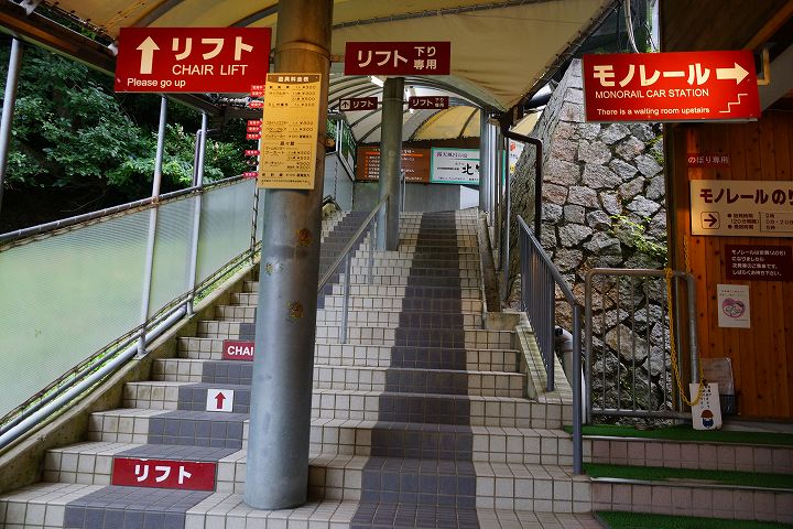 踏切を渡るとリフト・モノレール乗り場が見えてきます