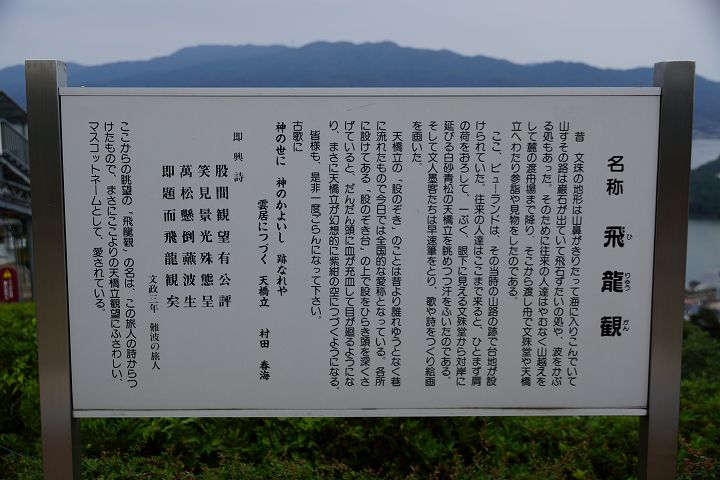 ここからの眺めは、天橋立が天に舞う龍のように見えることから「飛龍観」と呼ばれています。
