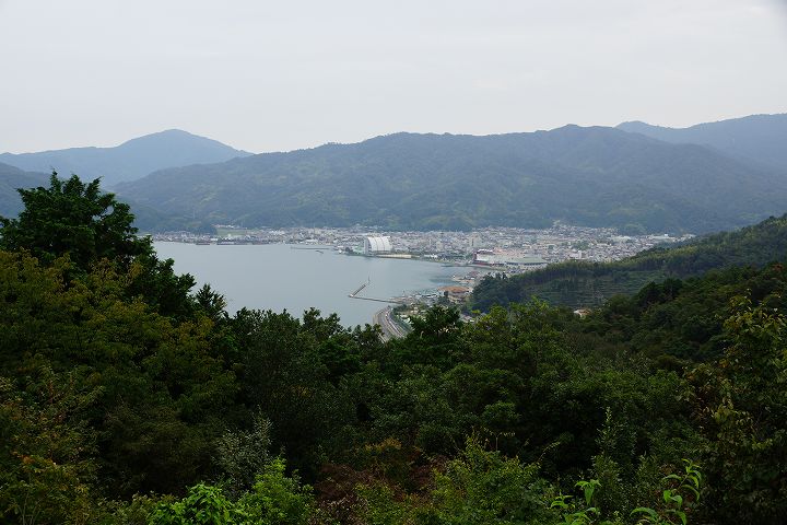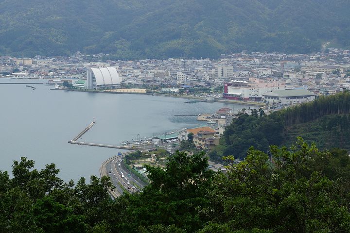 画像上側が宮津市中心部、下側は西宮津公園
