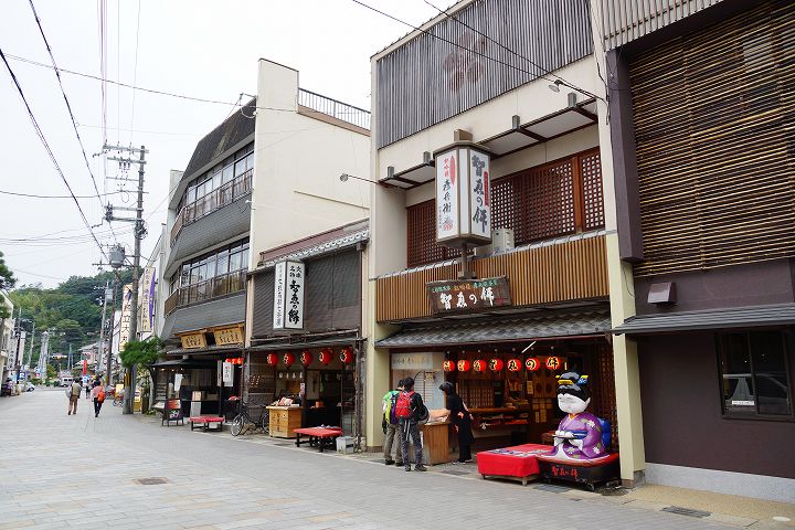 智恩寺・山門から文殊交差点へ通じる道沿いは土産物販売店が建ち並びます