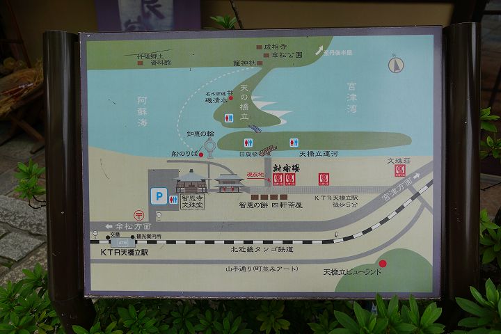 天橋立駅近くにある智恩寺の駐車場にクルマを置き、智恩寺、天橋立運河周辺、天橋立ビューランド、天橋立駅の順番で散策していきます。