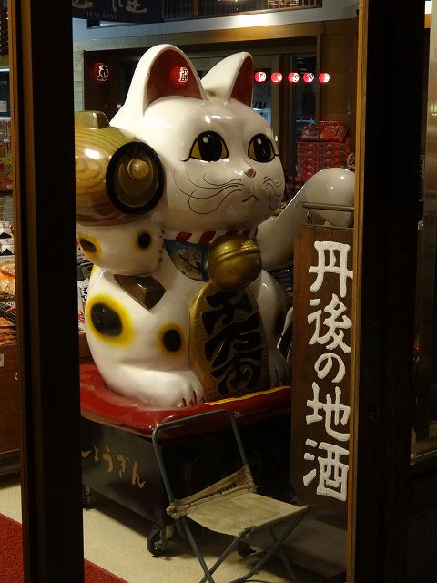 閉店後店内に移動した招き猫