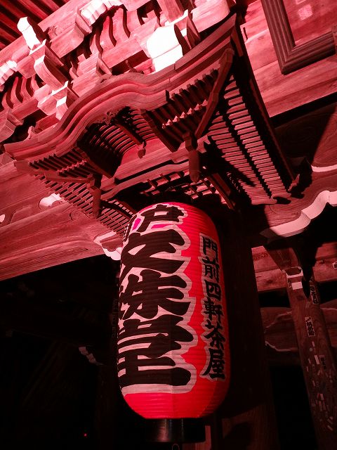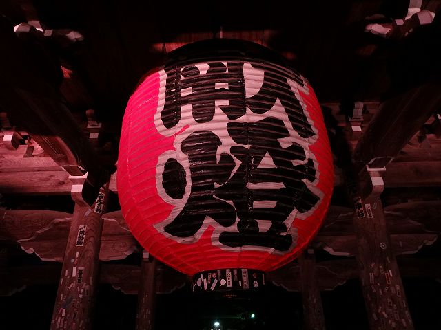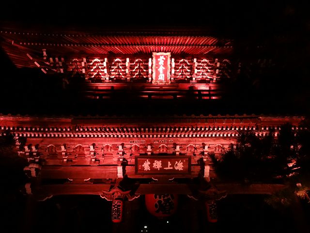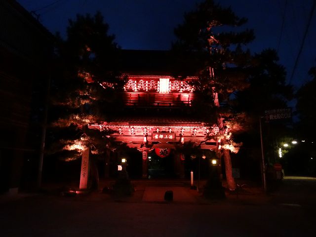 夜間ライトアップされた山門
