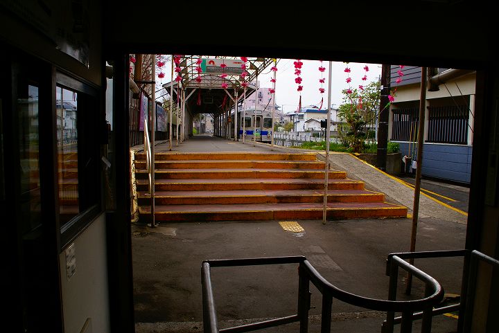 右へ曲がるとすぐ中央弘前駅に到着