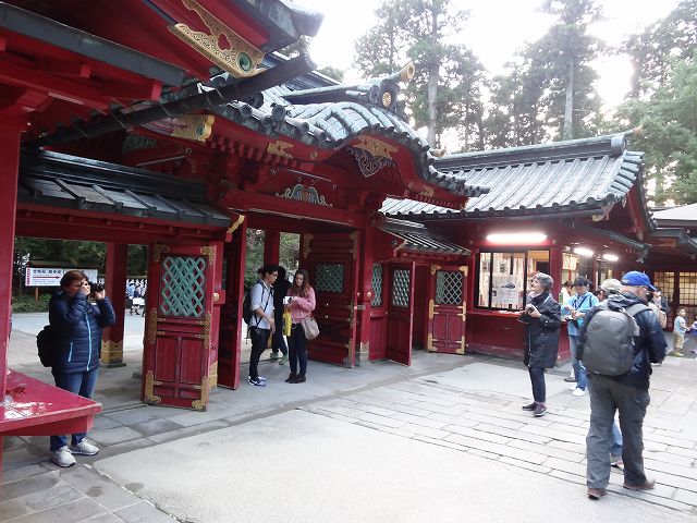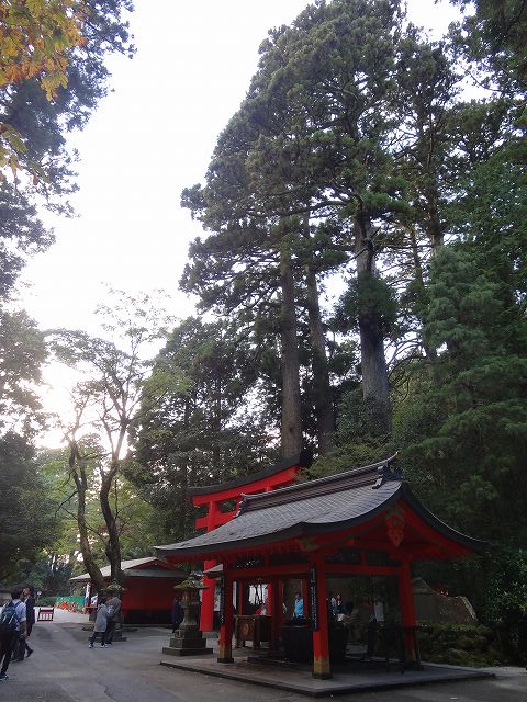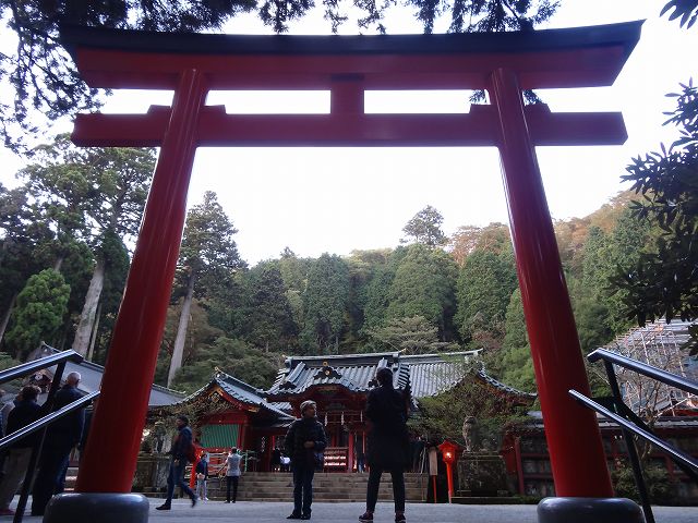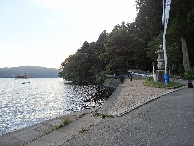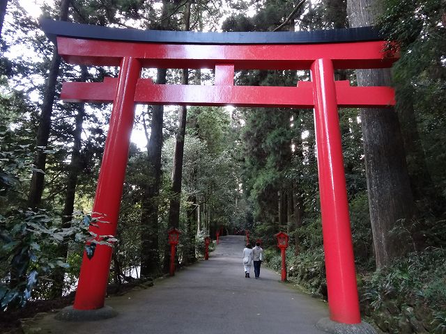 元箱根港から芦ノ湖湖畔を歩いていくと箱根神社にたどり着きます。