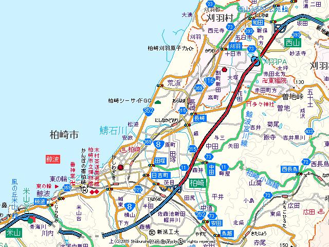 北陸道(西山IC〜柏崎IC) (2008年9月30日撮影) DSC-T9 西山インターから富山方面へ走行します 刈羽パーキングエリア入口 柏崎IC8q、米山IC20q、富山170q 前方に見える山までほぼ一直線の道を走ります 新潟県中越 米原まで400q地点 柏崎インターまであと2q 柏崎インター NEXT