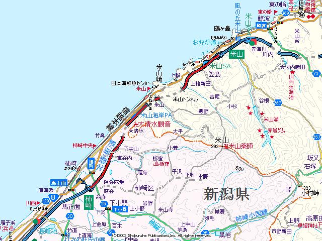 北陸道(米山IC〜柿崎IC) (2008年9月30日撮影) DSC-T9 右手に見える日本海 柿崎IC10q、上越IC28q、富山154q 柿崎インターまであと2q 正面には妙高山が見えてきました 柿崎インター NEXT