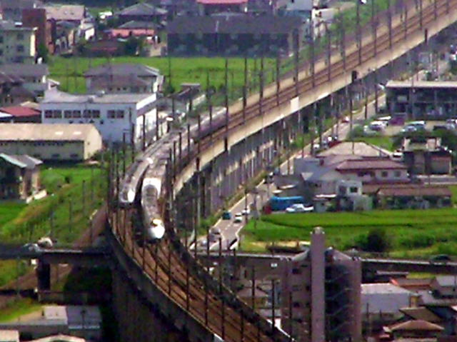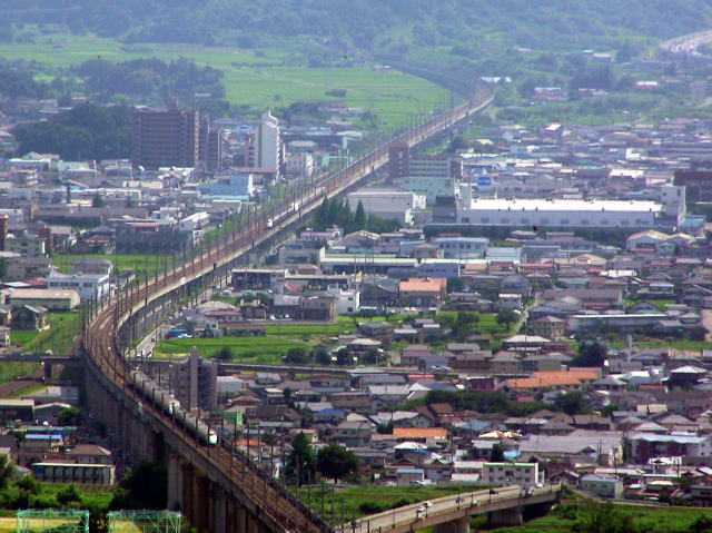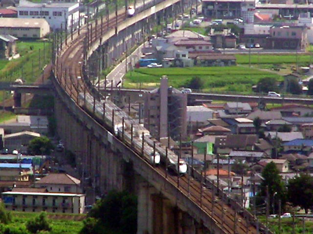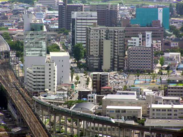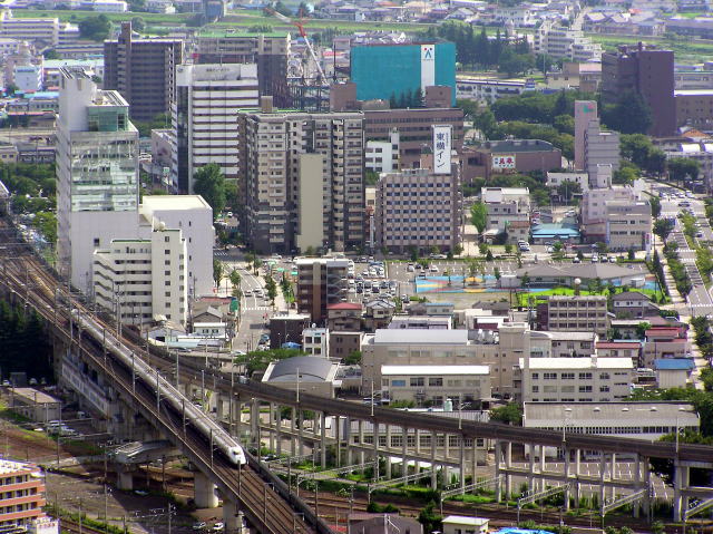 高架橋を下りていく山形新幹線つばさ