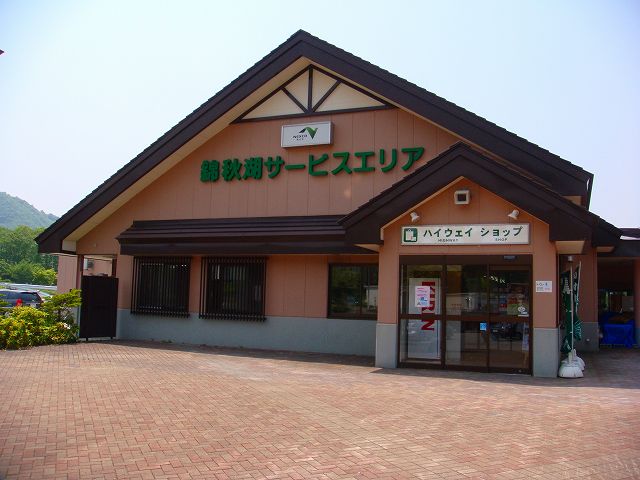 錦秋湖SAは上下線集約型SAで、この建物の反対側が上り線側駐車場になっています。