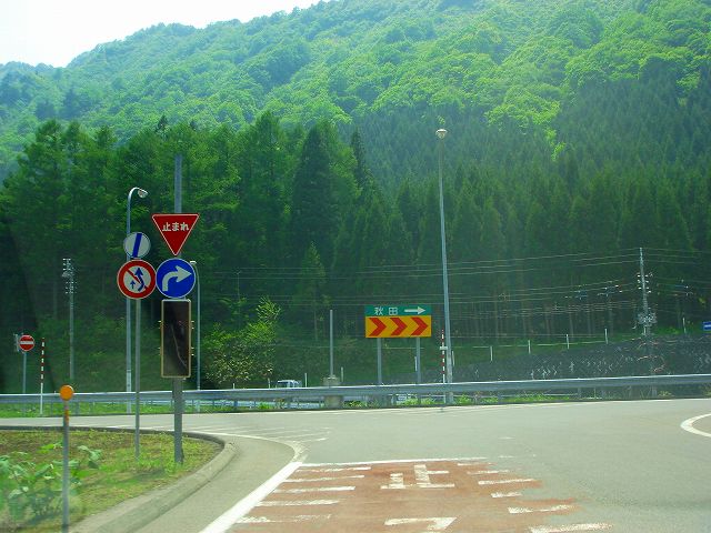 ここで一時停止、秋田方面へは右折