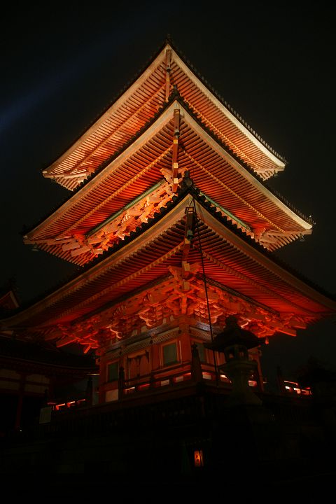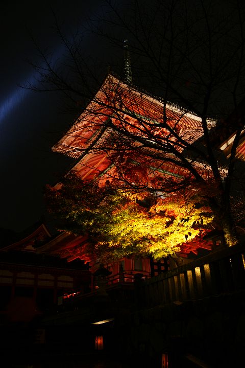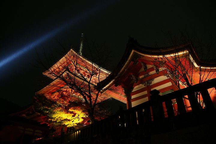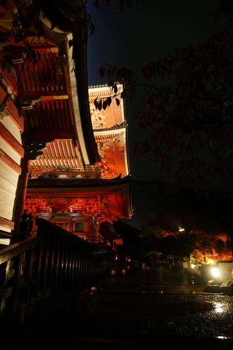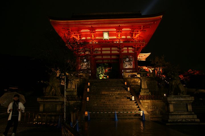 | 清水寺 紅葉ライトアップ Part1 (2010年11月22日撮影) DSLR-A700 清水寺では毎年春の桜と秋の紅葉の時期にライトアップが行われていて、今回は2010年秋の紅葉ライトアップを撮影しました。仁王門や清水の舞台の本堂などがライトアップされ、真っ赤な紅葉とともに幻想的な空間が演出されています。 清水寺仁王門前 夜間拝観は17:30〜21:30(受付終了)で、料金は400円です。 ![]() 仁王門から正門・三重塔を通り本堂へ向かいます ![]() 仁王門 ![]() ![]() 仁王門から見た参道 ![]() ![]() ![]() 三重の塔と西門 ![]() ![]() ![]() 三重の塔 ![]() ![]() ![]() ![]() ![]() ![]() 西門 ![]() ![]() ![]() 西門から見た京都市街と仁王門 ![]() ![]() 京都タワー ![]() ![]() ![]() ![]() ![]() 本堂入口 ![]() ![]() ![]() ![]() 清水の舞台 ![]() 京都タワーと紅葉 ![]() ![]() 京都駅・京都タワー方面 ![]() ![]() 清水の舞台から奥の院の様子 ![]() 奥の院ライトアップ ![]() ![]() ![]() ![]() ![]() ![]() ![]() ![]() ![]() ![]() ![]() ![]() ![]() ![]() ![]() 続いて奥の院から清水の舞台ライトアップを眺めます。 NEXT