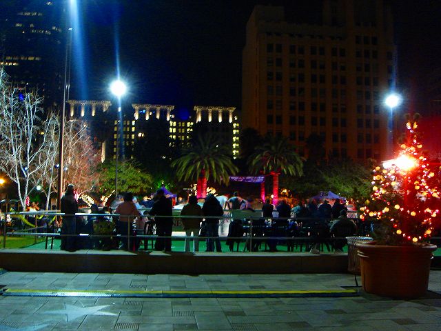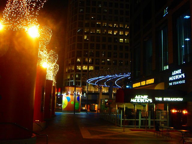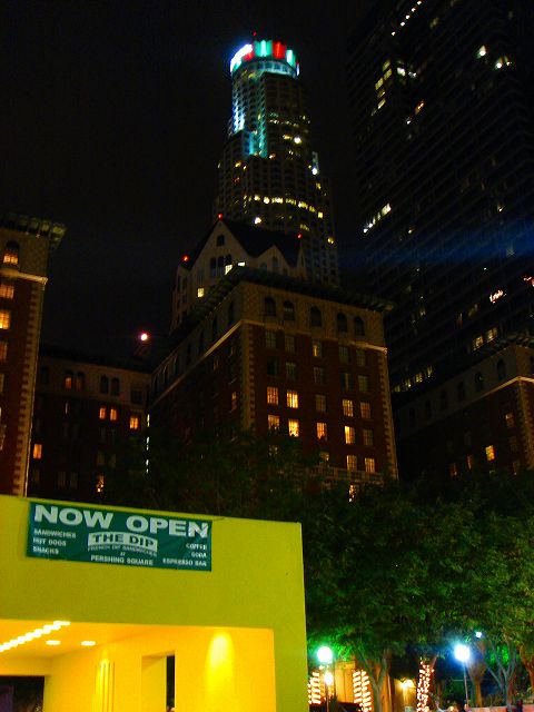 ハリウッドからダウンタウンへ戻りホテルにチェックインをした後、夜のダウンタウンをホテルのある北部から南部へと歩いていきます。週末ということで広場ではイベントが開催されていました。