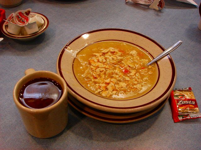 これはスープにクラッカーを混ぜたところ