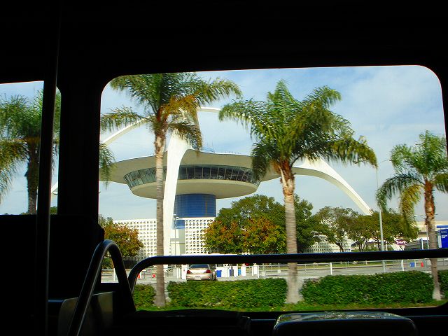 ロサンゼルス国際空港(LAX)に到着しました。飛行機を降りてターミナルまでは空港の大型バスで移動し入国手続きを行います。アメリカ国内へ入国する際には機内であらかじめ入国カードに必要事項を記入しておきます。このカードは成田での搭乗手続き時または機内で配布されているもので、アメリカへ入国する際には係員にそのカードを渡して入国手続きを行います。あのNYでのテロ事件発生以来入国審査が厳格になり、左右の人差し指の指紋を取られたり、手続きをしている最中にWebカメラで顔写真の撮影が新たに行われるようになりました。