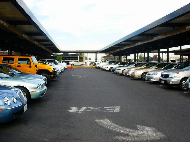 広い敷地内にはレンタカーがたくさんあります