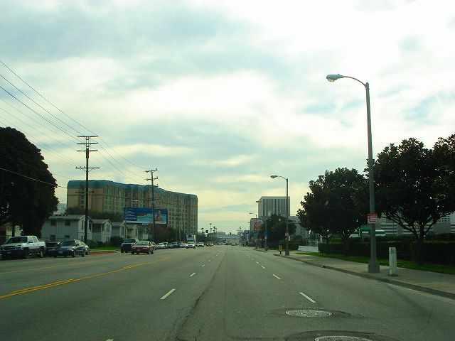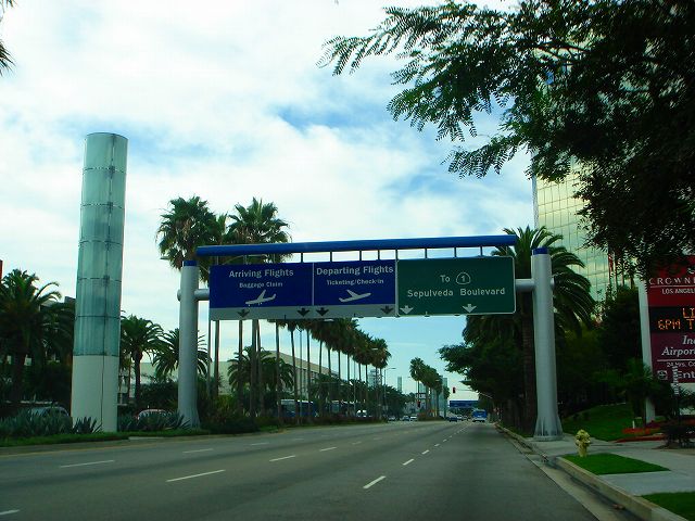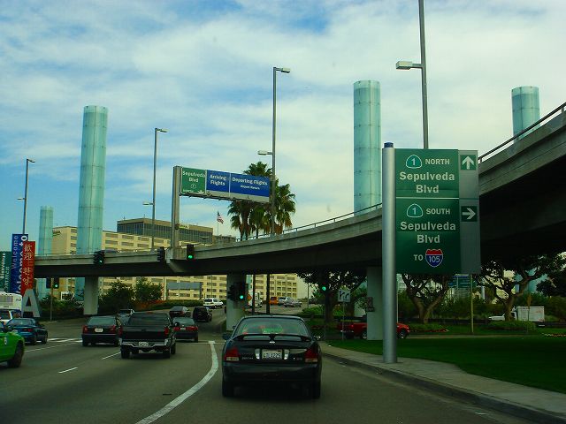 インターステート105号へはこの先右折しセプルベダブールバードを南方向へ