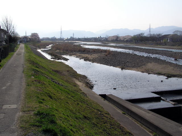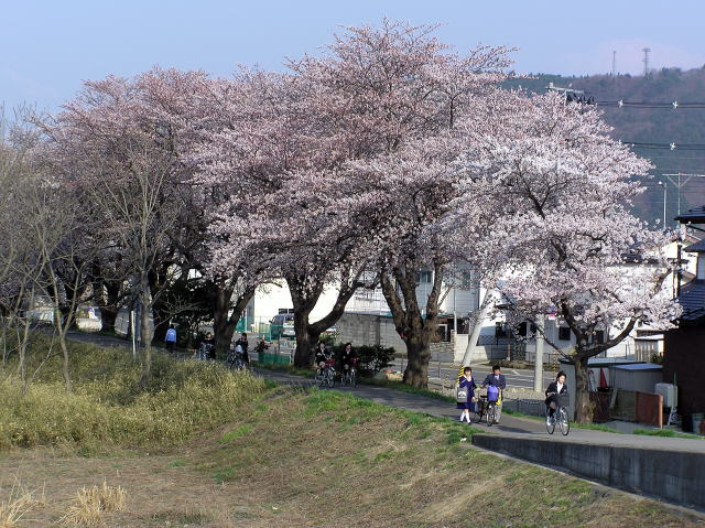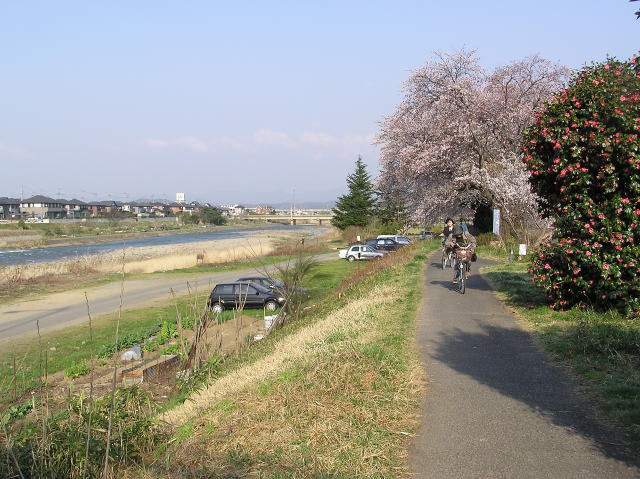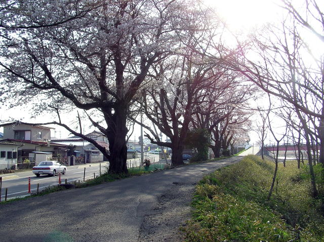 堤防沿いには東北本線から川寒橋にかけて桜の木が植えられていて、花見の時期になると東西に延々と続く見事な桜並木を見ることが出来ます。