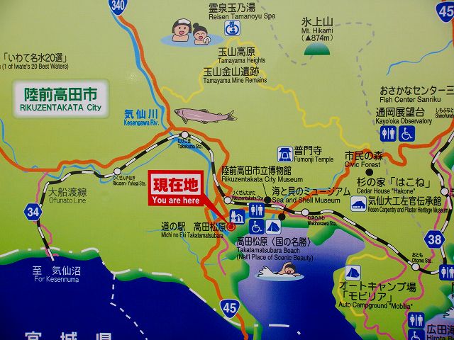 道の駅高田松原 (2008年5月1日撮影) DSC-T300 道の駅高田松原は陸前高田市の国道45号沿いにあり、道の駅のすぐ南方には日本百景にも数えられる景勝地で白砂青松の美しい海岸・高田松原があります。 大きな地図で見る 道の駅高田松原 道の駅南側は景勝地、高田松原 けんか七夕山車展示コーナー 実物より若干小さいけんか七夕山車を展示。 道の駅高田松原を出発 NEXT