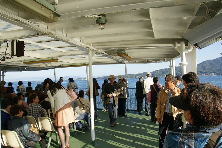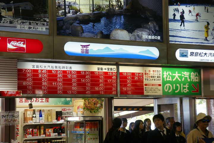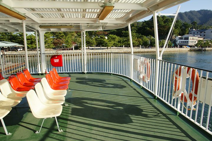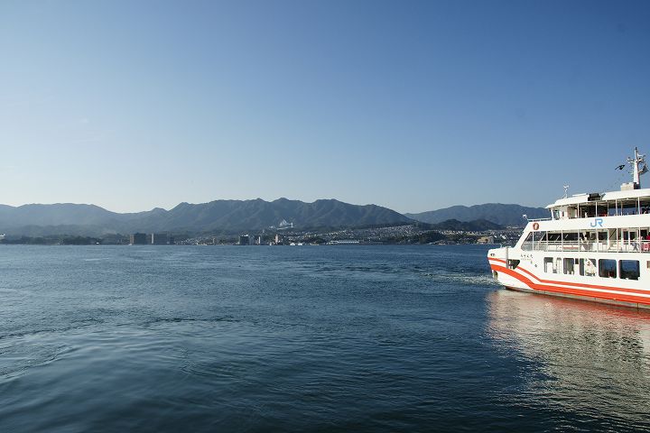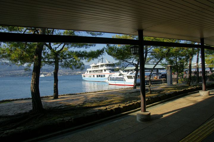 宮島フェリー (宮島口〜宮島) (2011年11月1日撮影) DSC-HX5V 宮島口フェリーターミナルから宮島へはJR西日本フェリーと松大汽船の2社がフェリーを運航しています。 JR西日本フェリーは日中の時間帯には宮島の大鳥居に接近しながら航行します。 JR西日本宮島フェリー 宮島口〜宮島 NEXT