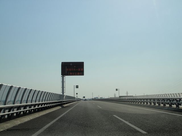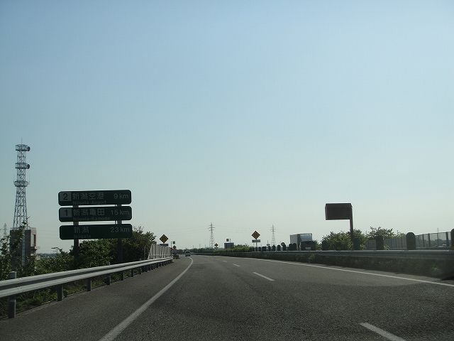 日本海東北道 (豊栄新潟東港IC〜新潟空港IC) (2011年5月18日撮影) DSC-T900 新潟空港IC 9q、新潟亀田IC 15q、新潟23q 豊栄PA 3q、磐越道新潟PA 18q、北陸道黒埼PA 25q 豊栄パーキングエリア入口 阿賀野川を渡ります 阿賀野川 新潟空港インターまであと1.7q 新潟空港インター