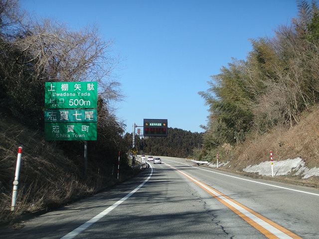 のと里山海道 (柳田IC〜上棚矢駄IC) (2011年2月21日撮影) DSC-T900 上棚矢駄インター8q、西山インター12q、穴水46q ここからしばらく片側2車線区間 上棚矢駄インター