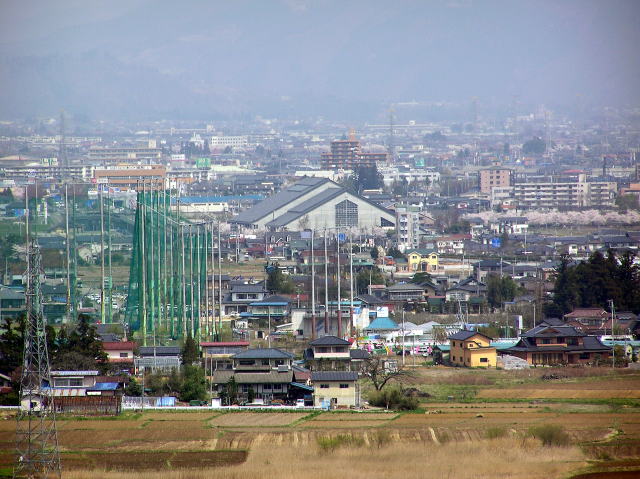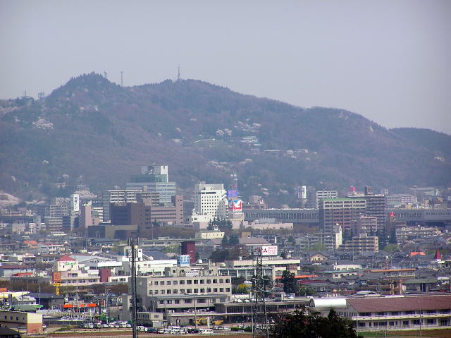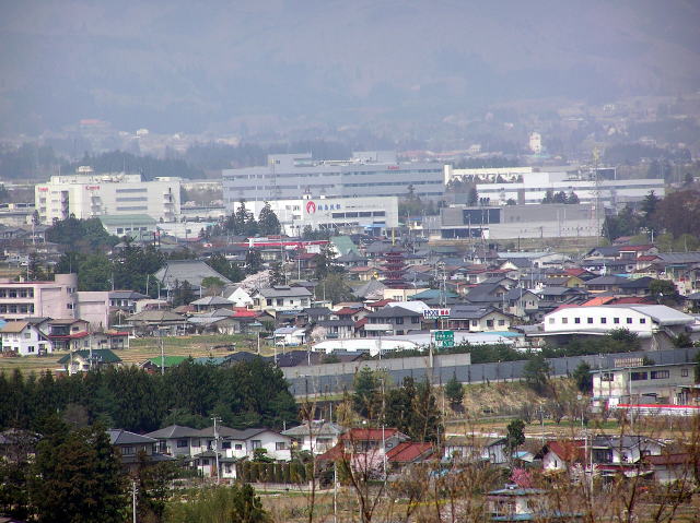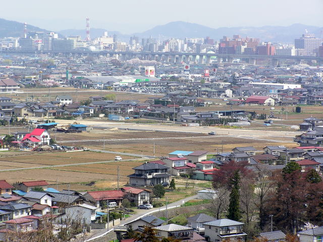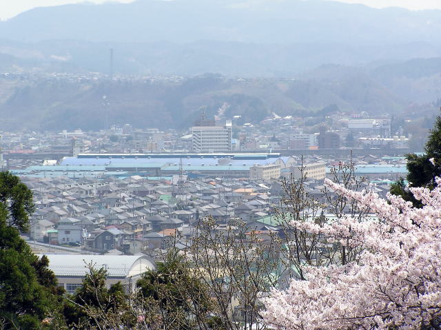 城山公園北側にある物見櫓から見た福島市街地の様子です。