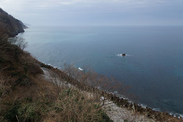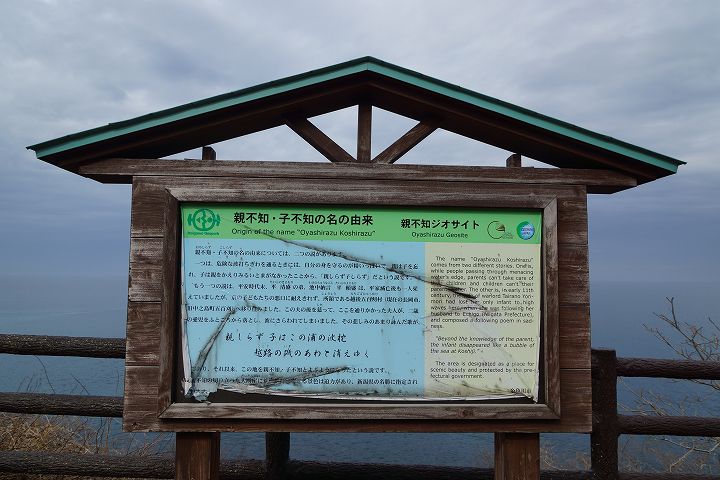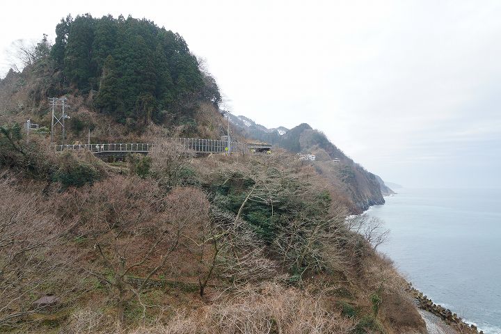 親不知海岸が眺望できる展望台が整備されていて、明治時代以前の交通の難所だった親不知の断崖絶壁やその断崖絶壁を削り取って設置された国道8号の様子を見ることができます。