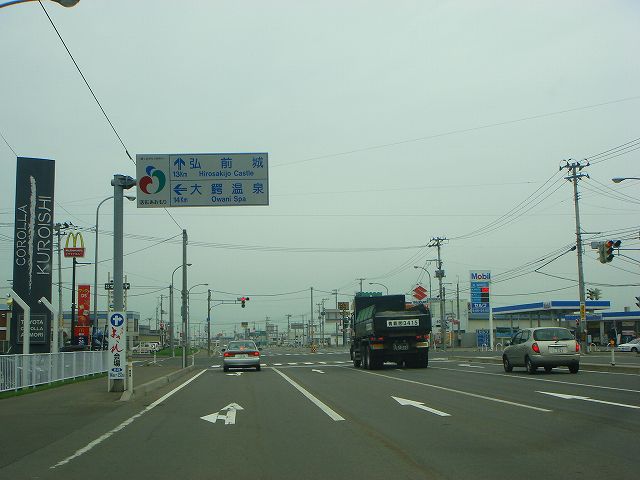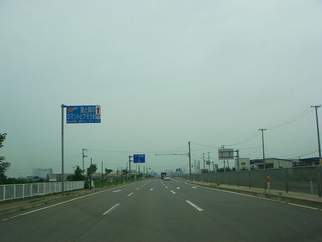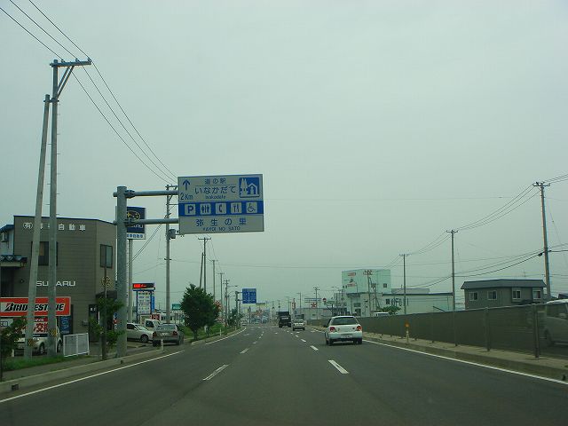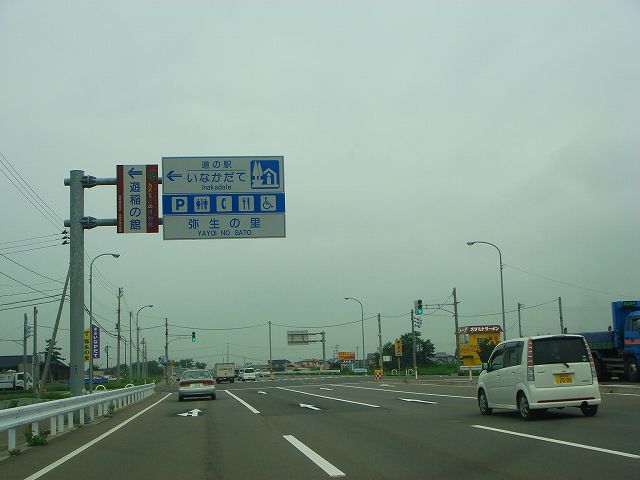 国道102号(黒石IC〜道の駅いなかだて)(2009年8月7日撮影) DSC-T9 この先道の駅いなかだてまで片側3車線 道の駅いなかだて入口