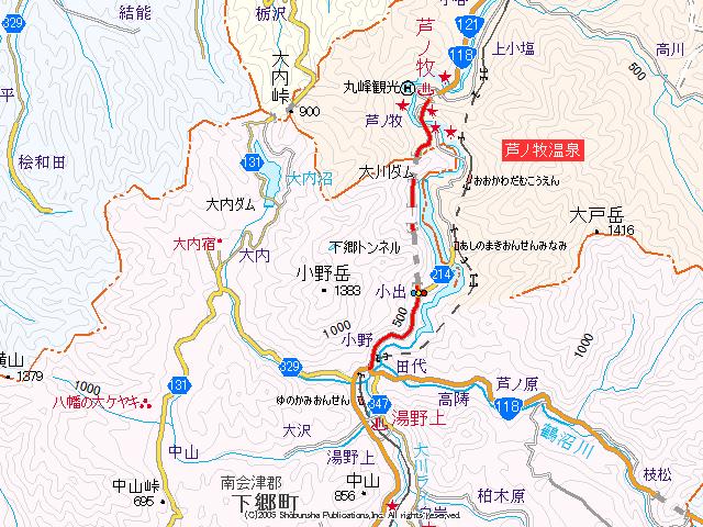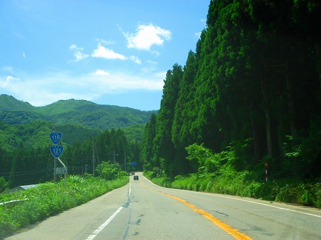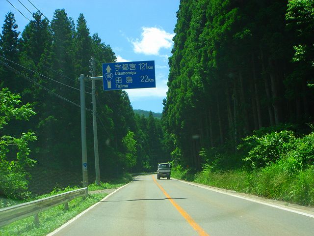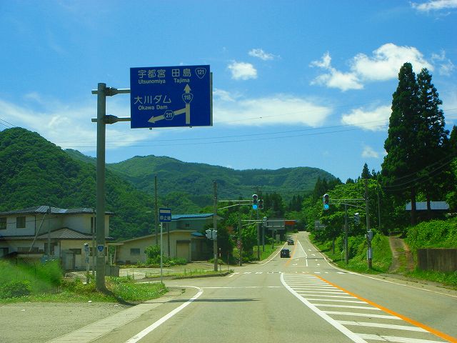 国道118号(芦ノ牧温泉〜湯野上) (2007年6月23日撮影) DSC-T9 ここから下郷町に入ります 橋を渡ってトンネルへ入ります まもなく国道118・121号分岐 国道同士の分岐点の割にはわかりづらい交差点です。 標識のすぐ下が分岐点。 須賀川方面へ向かう場合、スピード出してるとかなりの確率で通り過ぎますw 国道118須賀川方面と121号南会津方面との分岐点 ここはカーブでなおかつ信号機がないため須賀川方面へはうっかりすると通り過ぎてしまうので注意。