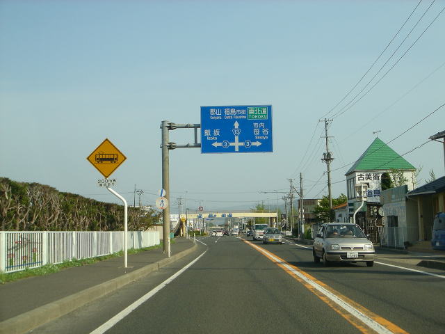 ここで福島駅東口から飯坂温泉を結ぶ県道3号(飯坂街道)と交差します。