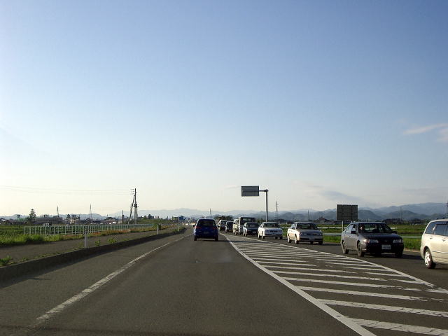 国道13号大曲バイパスは大仙市大曲市街地東部の水田地帯の中を走る快適な道路で現在4車線化工事が進行中です。バイパス北側の終点近くで国道105号本荘・角館方面への入口があります。