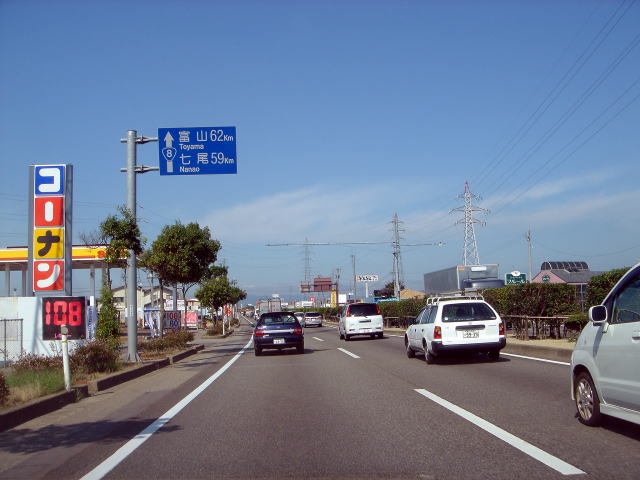国道8号富山、国道159号七尾方面は直進
