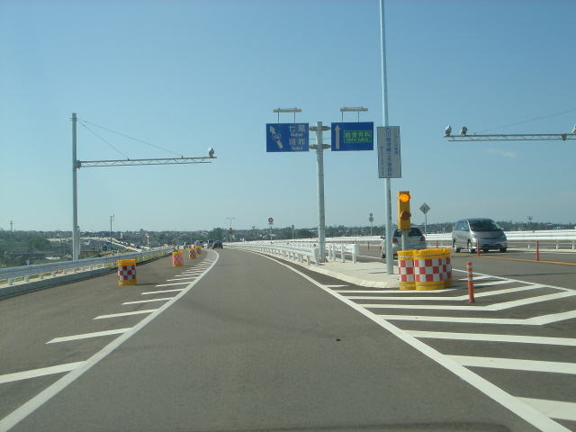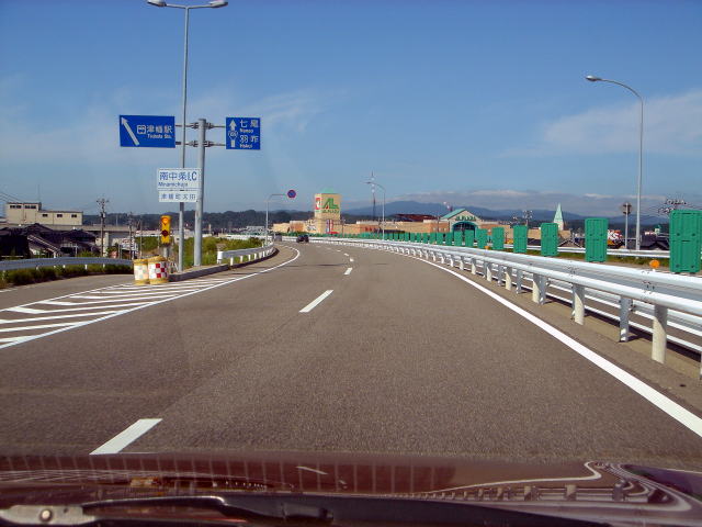 右側の高架道路はそのまままっすぐ進んで能登有料道路に接続します