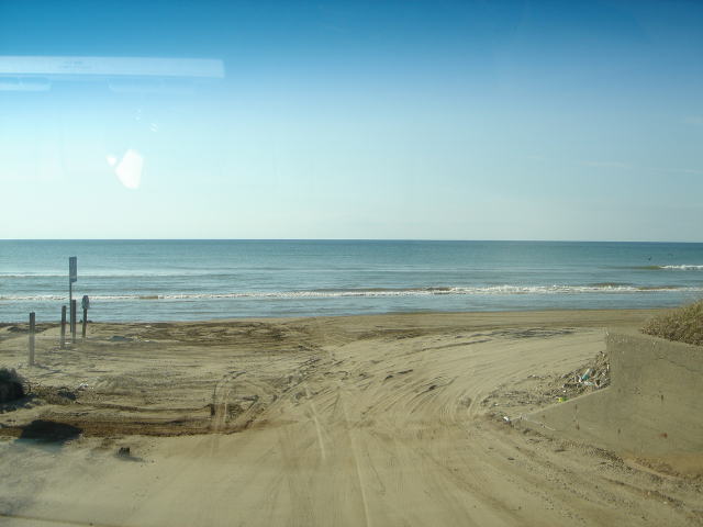 ここから北8km先まで延々と砂浜海岸道路が続きます。