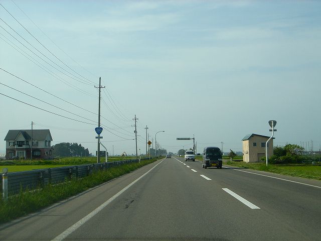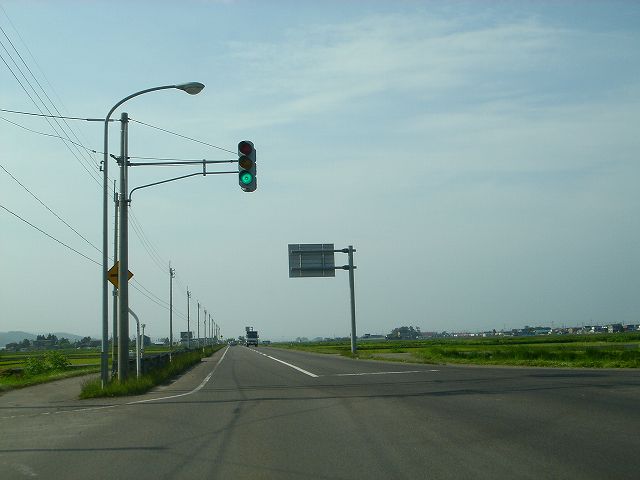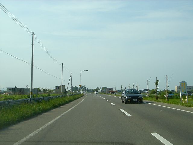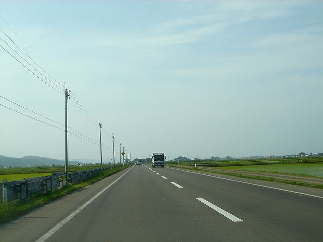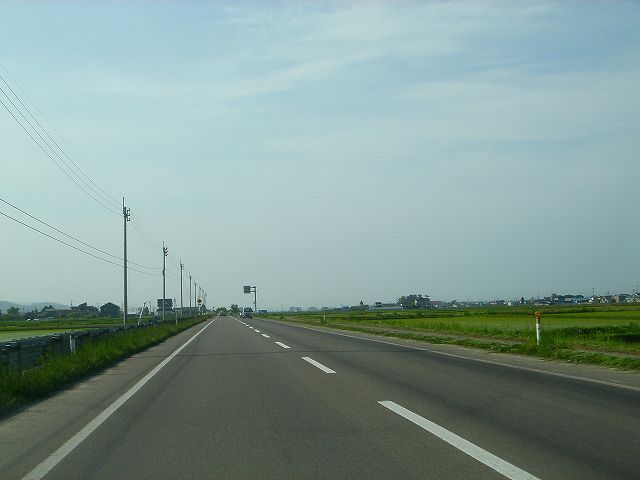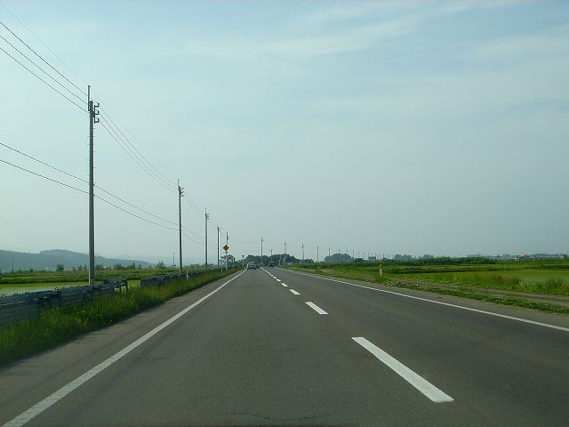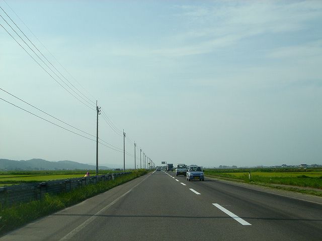 国道7号青森西バイパスから分岐し陸奥湾西岸内陸部を走る国道280号バイパスを北上して津軽海峡冬景色で有名な竜飛崎を目指します。しばらく市街地を走行したあと広大な水田地帯の中、ほぼ一直線に続く道を走行していきます。