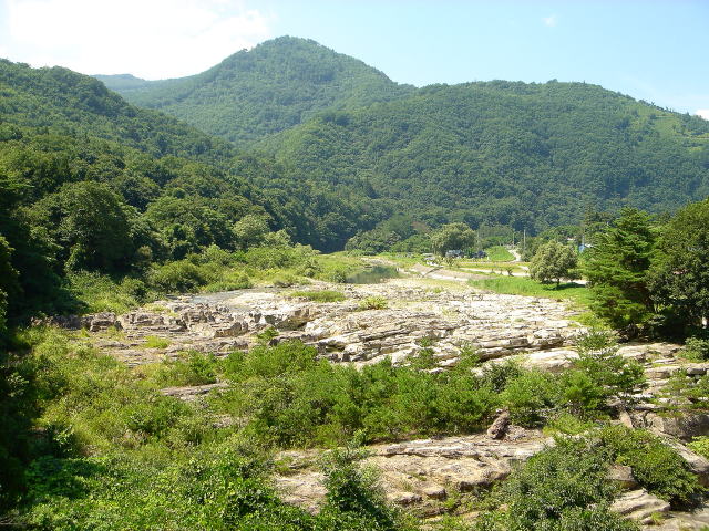 この付近の摺上川は奇岩が広がる川原を流れてとても素晴らしい景観を生み出しています。