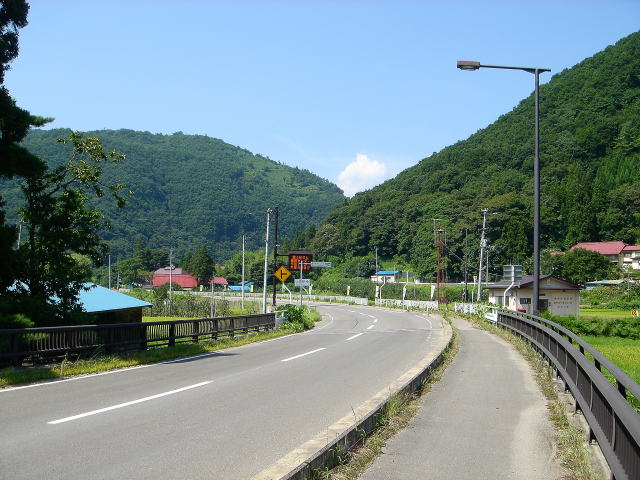 この道路はこの先宮城県境近くの摺上川ダム上流、名号地区まで続く整備された2車線道路です。