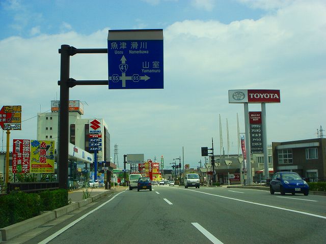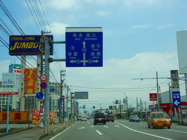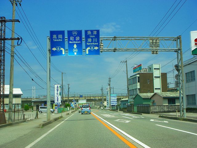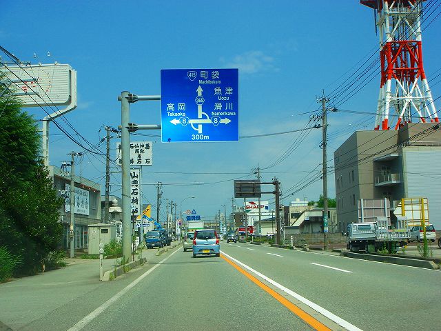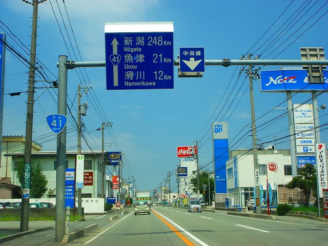 国道8号新潟248km、魚津21km、滑川12km