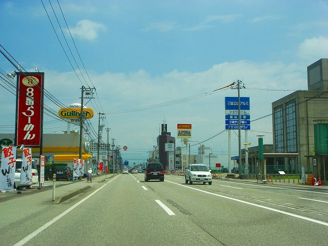国道41号富山地鉄稲荷町駅付近の舘出交差点から国道8号バイパス方面へ北東方向に走行していきます。