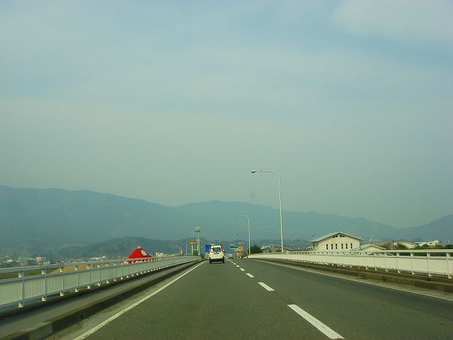 陸前高田市の高田バイパスに入ります。旧道から右へ分岐し気仙大橋を渡って景勝地高田松原の海岸沿いに進み、県道38号と分岐し大船渡三陸道路通岡インターへと向かいます。