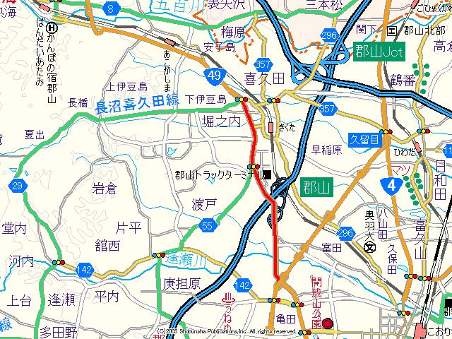 国道49号 (あさか野BP〜喜久田) (2006年5月30日撮影) DSC-T9 東北道郡山インター入口 東京・宇都宮方面 東北道(郡山IC〜郡山南IC) 国道49号 会津若松方面 郡山インターから合流 東北自動車道が国道49号真下を横断します 郡山トラックターミナル入口 卸センター入口 喜久田駅入口 NEXT