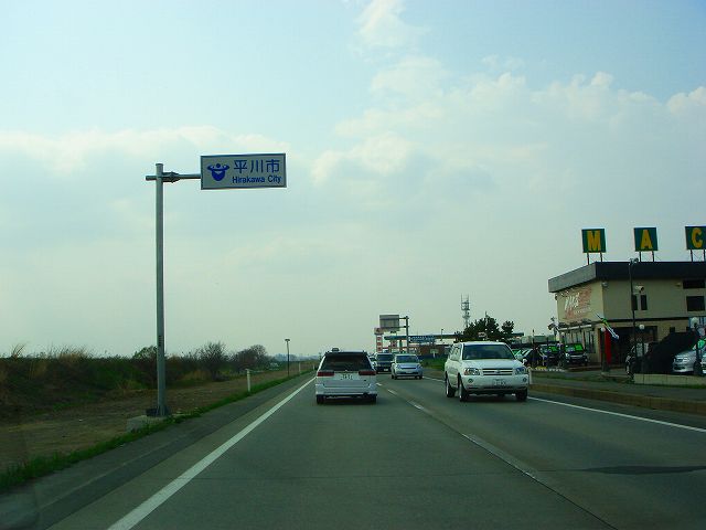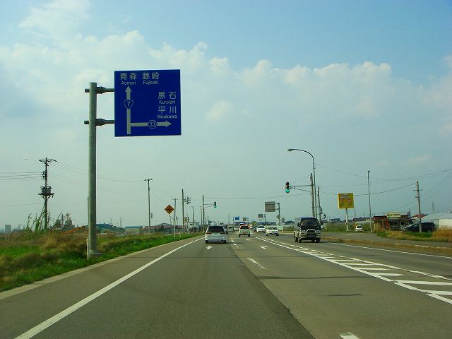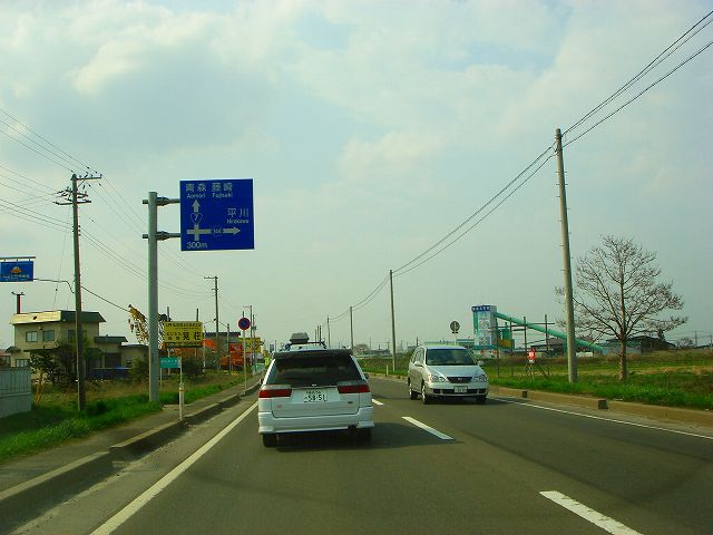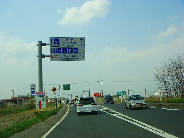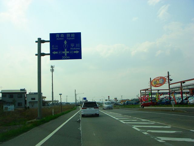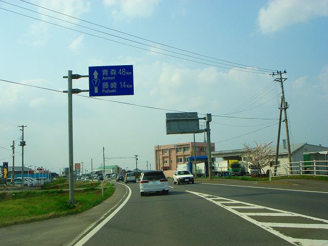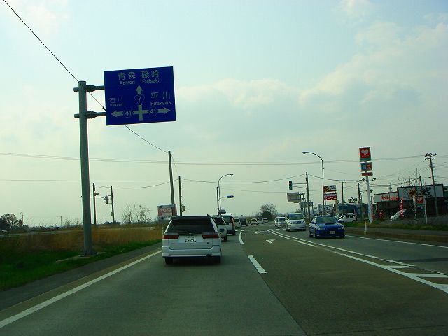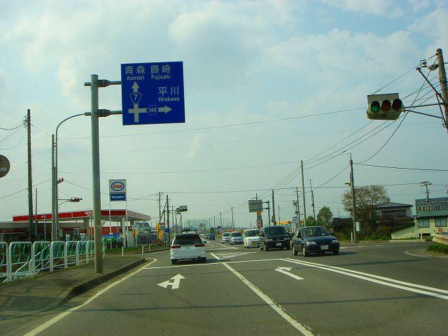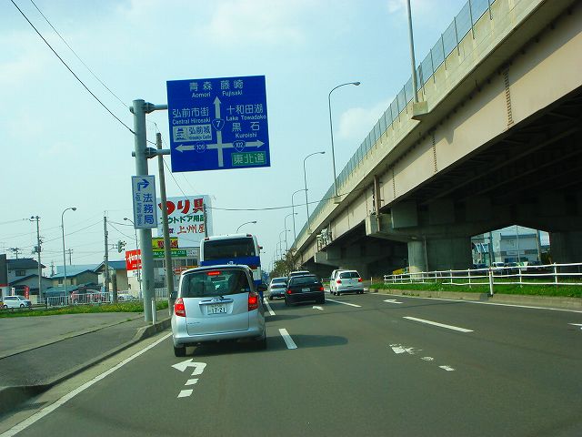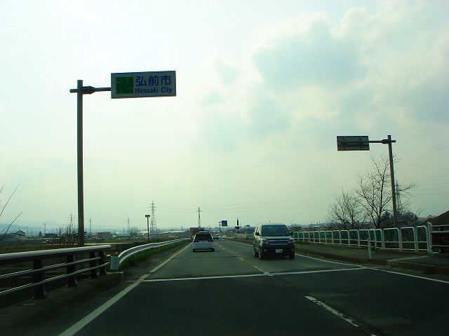 国道7号(弘前市内入口〜国道102号) (2007年5月3日撮影) DSC-T9 旧国道7号分岐点から弘前バイパスへ入ります 東北自動車道大鰐弘前インター入口 青森48km、藤崎14km 道の駅ひろさき入口 県道41号と交差 一度平川市内へ入ります 県道13号入口 青森46km、藤崎12km 弘前大橋 再び弘前市内へ 県道144号入口 この先4車線区間 弘前市街方面へ進みます 弘前駅へは左折、国道102号東北道黒石インター方面は右折