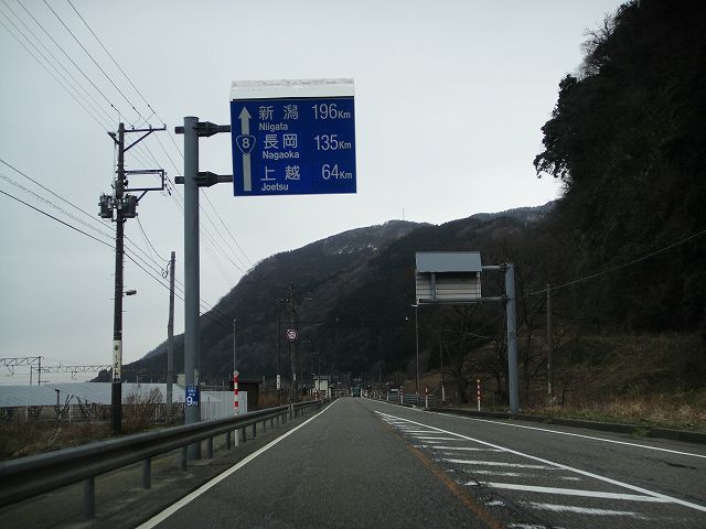 | 国道8号(市振〜親不知)(2015年2月26日撮影) DSC-T900 道の駅市振の関から上越方面へ走行します ![]() 新潟196q、長岡135q、上越64q 県都新潟市までずいぶん距離ありますねw ![]() ![]() ![]() ![]() 市振駅前 市振駅は新潟県最西端の駅となります。 市振駅 ![]() この道は「日本海夕日ライン」の一部 日本海夕日ラインは新潟県の海岸沿い走る国道8号、国道402号、国道113号、国道345号、国道7号などで構成される約337qの道で、日本海の夕日を楽しめるドライブルートになっています。 ![]() ![]() ![]() ![]() ![]() ![]() ![]() ![]() ![]() ![]() ![]() ![]() ![]() ![]() ![]() ![]() ![]() ![]() ![]() ![]() ![]() ![]() ![]() ![]() ![]() ![]() ![]() ![]() ![]() ![]() ![]() ![]() ![]() ![]() ![]() ![]() ![]() ![]() ![]() ![]() ![]() ![]() ![]() ![]() ![]() ![]() ![]() ![]() ![]() ![]() ![]() ![]() ![]() ![]() ![]() ![]() ![]() ![]() ![]() ![]() 親不知記念広場駐車場 ここからは親不知海岸の断崖絶壁が見れます。 親不知記念広場 ![]() 再び国道8号を東へ進みます ![]() ![]() ![]() ![]() ![]() ロックシェッドを抜けると北陸道と交差 ![]() 道の駅親不知ピアパークまであと2q ![]() 北陸道の高架橋と交差 ![]() ![]() ![]() ![]() ![]() ![]() ![]() ![]() ![]() ![]() ![]() 北陸道親不知インター入口 親不知インターは全国的にも珍しい海上にあるインターチェンジです。 北陸道(親不知IC〜越中境PA) ![]() ![]() 親不知インタ-入口から新潟189q、長岡128q、上越57q ![]() ![]() ![]() ![]() ![]() ![]() ![]() ![]() ![]() ![]() ![]() ![]() ピアパーク前交差点 左手は道の駅親不知ピアパークが北陸道高架橋下にあります。 右手は旧国道8号の入り口で山伝いに親不知駅方面へ通じています。 ![]() NEXT