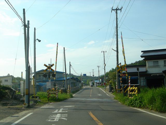 津軽線の踏切を渡ります