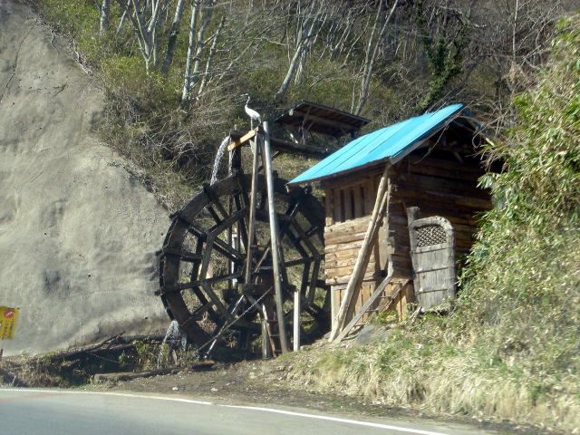 道路わきにある水車