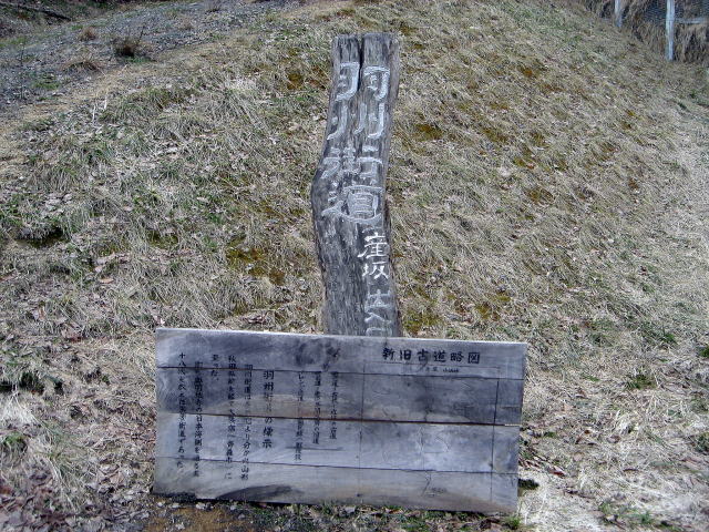 同じくカーブわきにある羽州街道産坂出入口の立て札